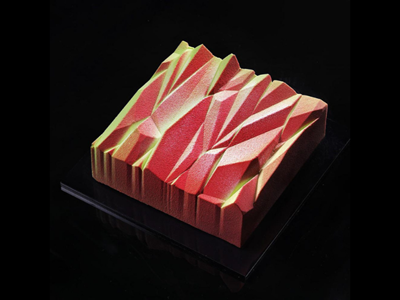 Dinara Kasko makes geometric and abstract designed cakes with mathematical algorithms and the latest 3D printing technology using silicone cups.
