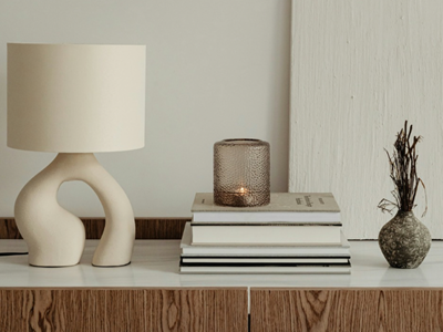 Görsellerdeki mum, abajur, kitap ve biblonun uyumundan ilham alıp evinize de aynı şekilde uzun süre kullanabileceğiniz dekorlar alabilirsiniz.
