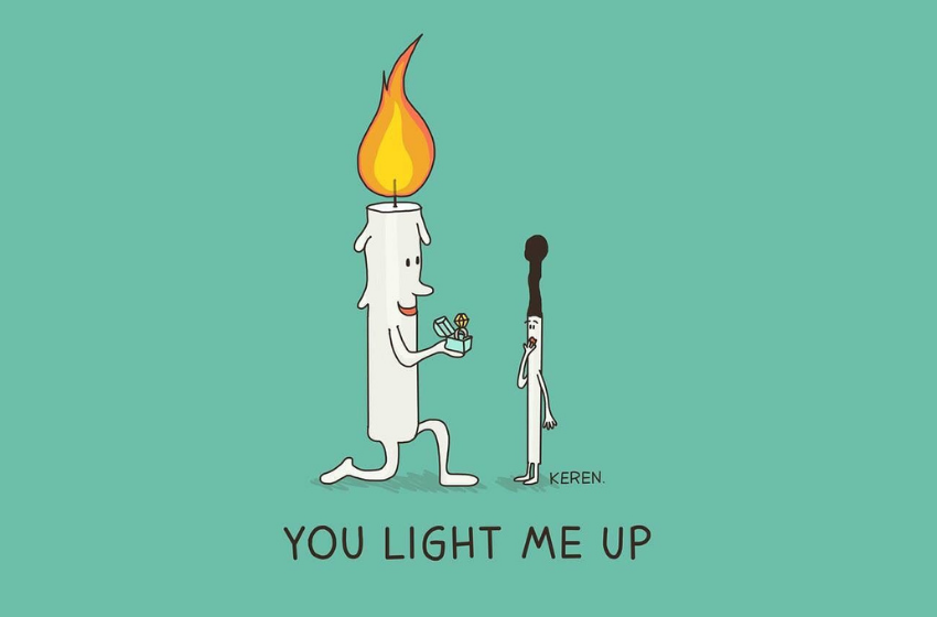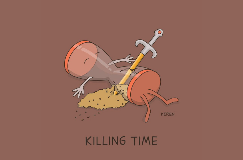 Keren has many creative works while her “Literal Idioms” collection is one of my favorite. It is always fun to imagine idioms and phrases literally. Everyone of us pictures them differently but the artist Keren Rosen decided to put her thoughts on the paper. Her simple, cartoonish images break down the meaning of each word and illustrate their individual definitions. You can see how Keren is picturing some of the classic idioms like “Jam session”, “killing time” or “mind blowing”.