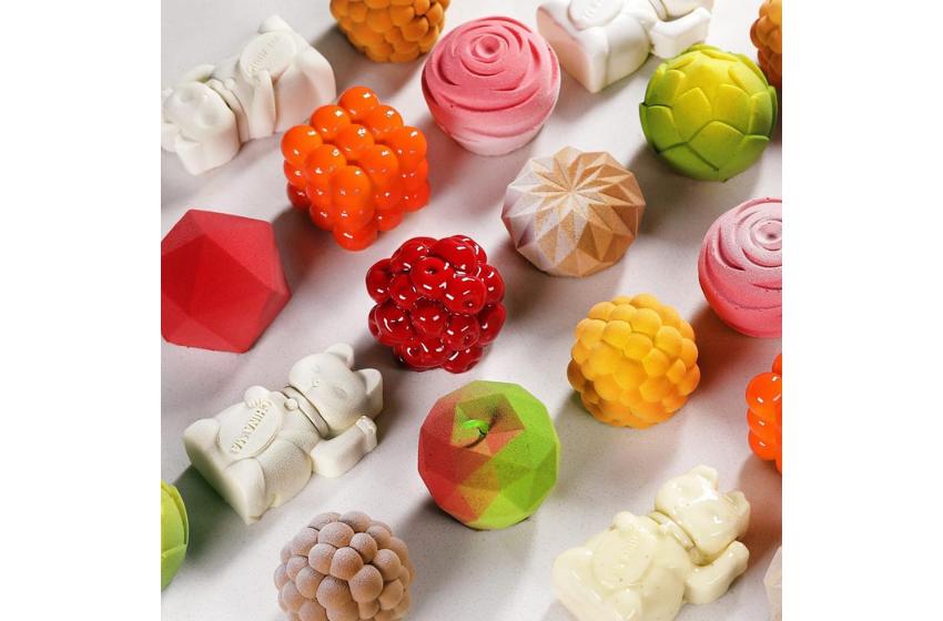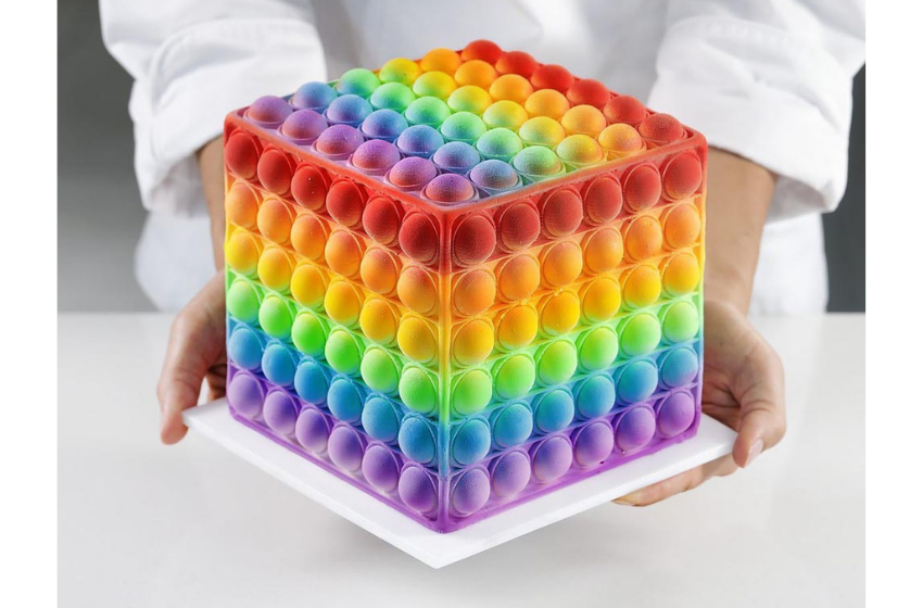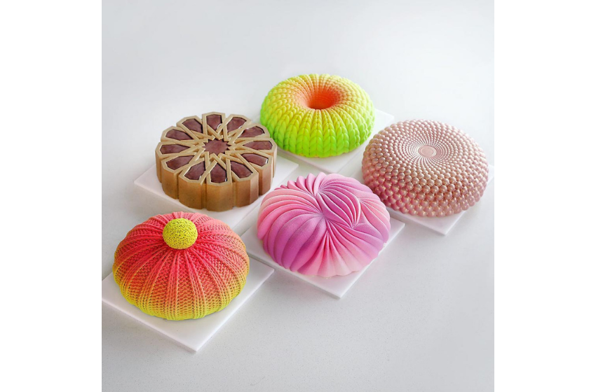 Dinara Kasko, silikon kaplar kullanarak matematiksel algoritmalar ve en son 3D baskı teknolojiyle geometrik ve soyut tasarımlı pastalar yapıyor.