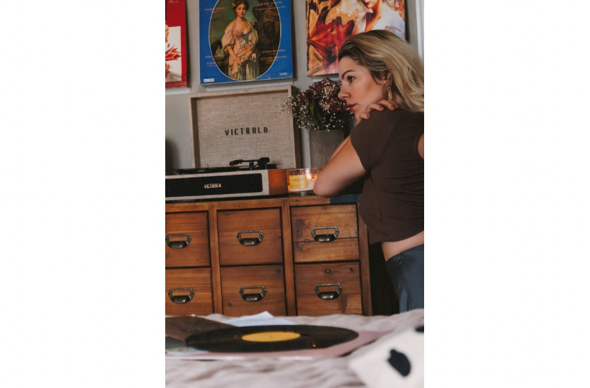 Plakçalarımızı bir yere koyacağız sonra arkasındaki duvara plaklarımızı, plaklar için özel olarak satılan rafların üzerine yerleştireceğiz. İşte bu kadar.