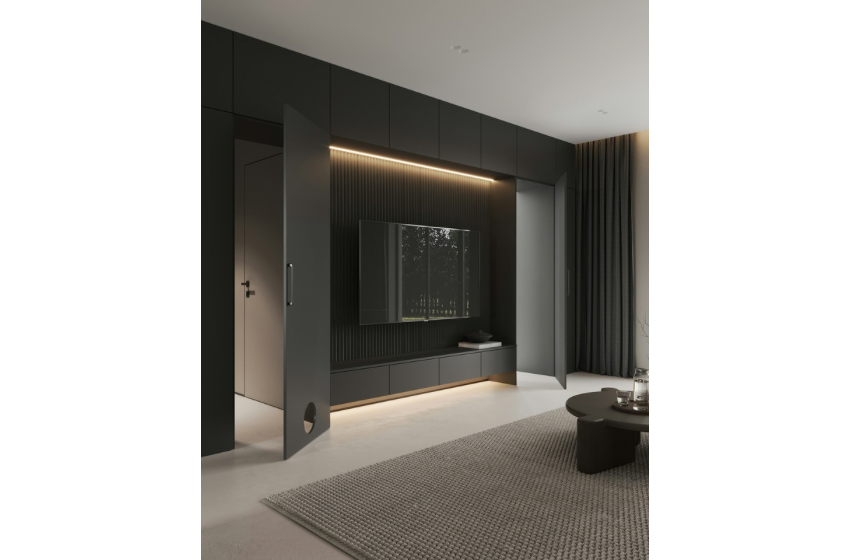 Biraz sonra aşağı kaydırdığınızda göreceğiniz üzere örneğimizde yer alan evde az ama öz eşya ve bolca depolama alanı var. Ortalıkta gereksiz hiçbir şey bulunmuyor. Ayrıca kapının altında evcil hayvanların rahat geçebilmesi için bir alan bulunuyor (ki bu inanılmaz akıllıca).